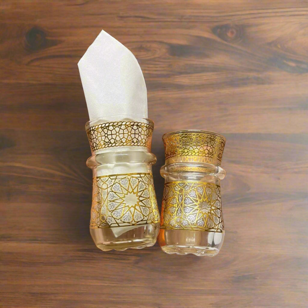Offrez à vos invités une expérience raffinée avec cet ensemble de 12 verres à thé en verre doré . Conçus avec un design oriental élégant et des motifs dorés luxueux, ces verres sont parfaits pour savourer du thé marocain, turc ou arabe . Idéal pour les réceptions, les fêtes et les moments de détente, cet ensemble ajoute une touche d'élégance et de tradition à votre vaisselle.