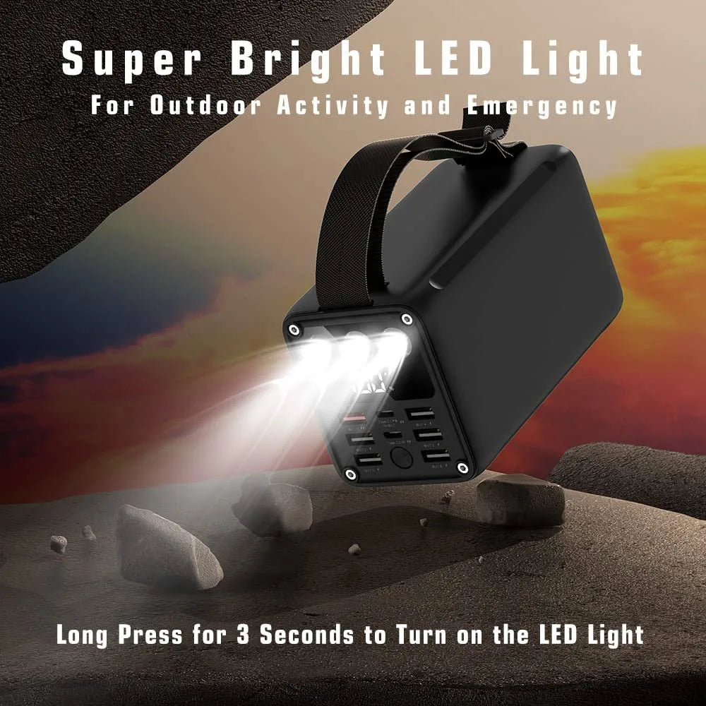 Avec une capacité colossale de 60000mAh, cette batterie externe est pensée pour ceux qui refusent de tomber en panne d’énergie. Que vous soyez en voyage, en camping ou simplement en déplacement quotidien, elle recharge vos appareils plusieurs fois sans effort.