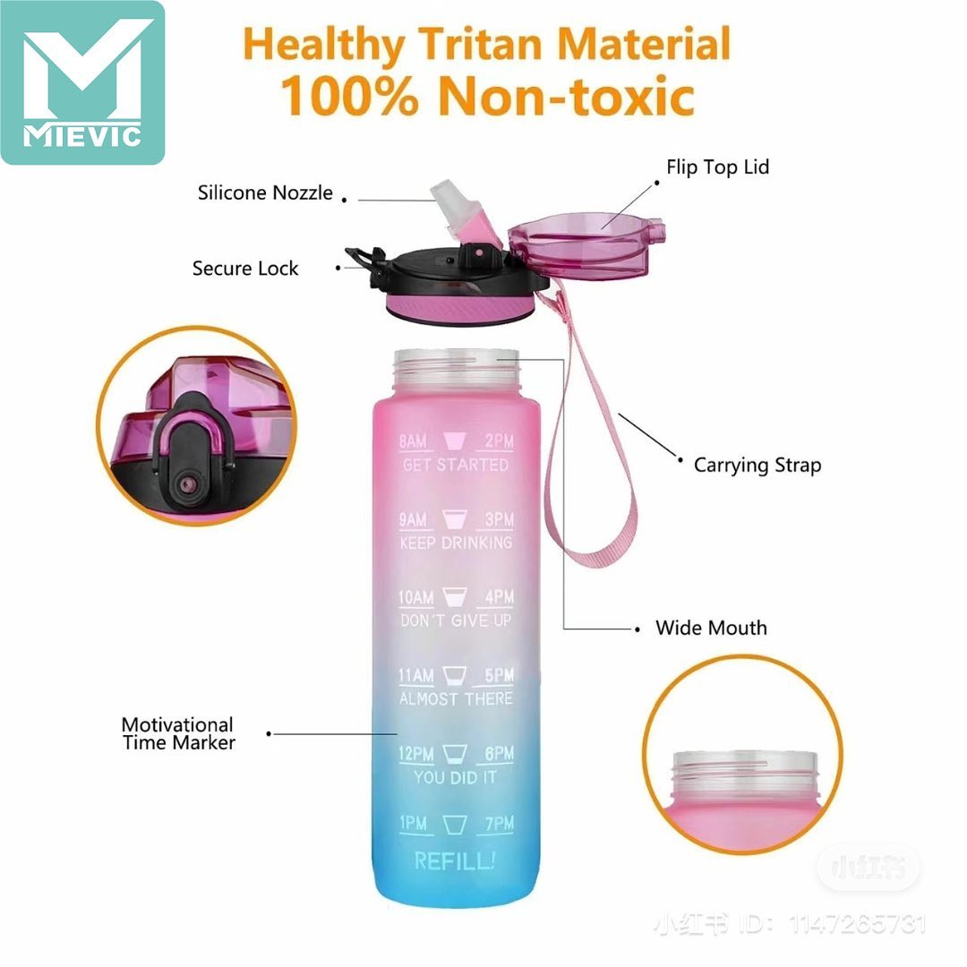 la bouteille d'eau de 1 litre est fabriquée en plastique de qualité alimentaire respectueux de l'environnement, 100 % sans BPA, sûr et sans odeur, durable et réutilisable.