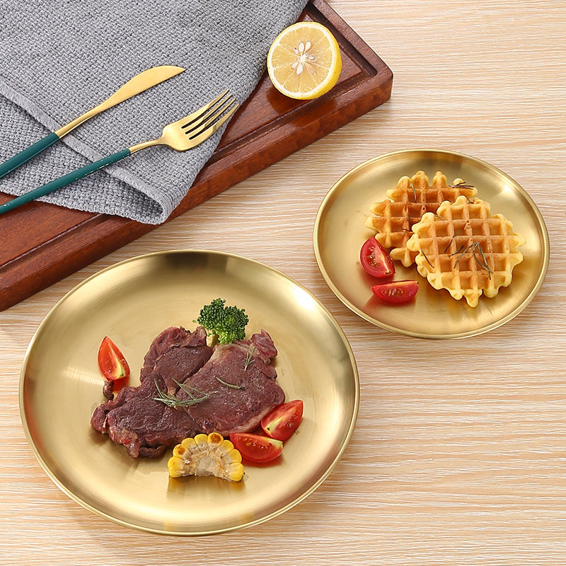Ensemble de Plateaux Décoratifs Ronds en Acier Inoxydable Doré, Style Coréen, 3 Pièces