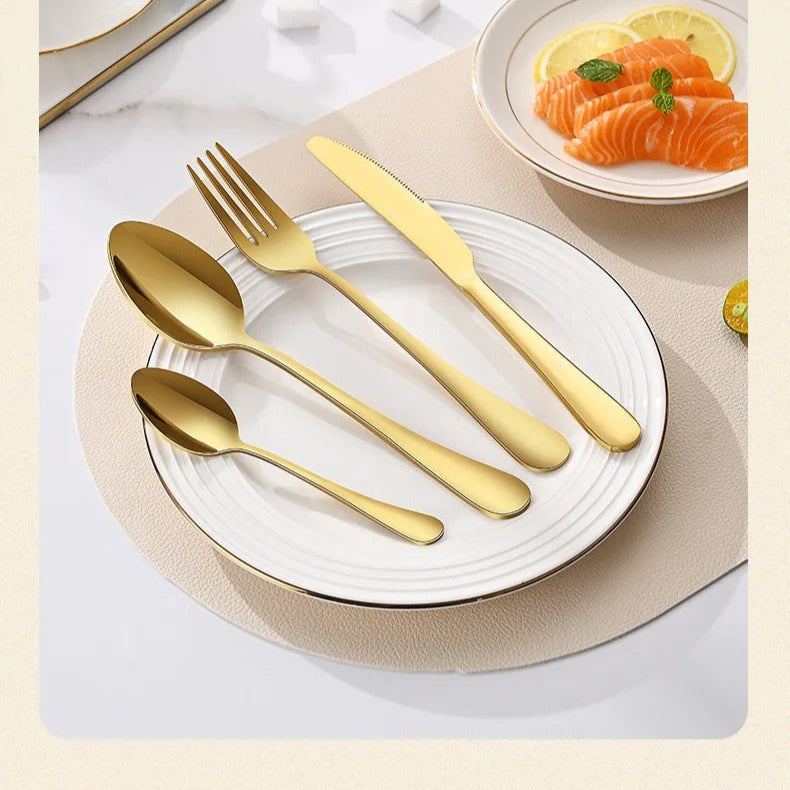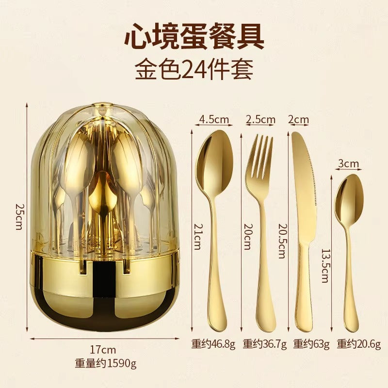 Ensemble de couverts en acier inoxydable, transparent en forme de fleur sa dorée