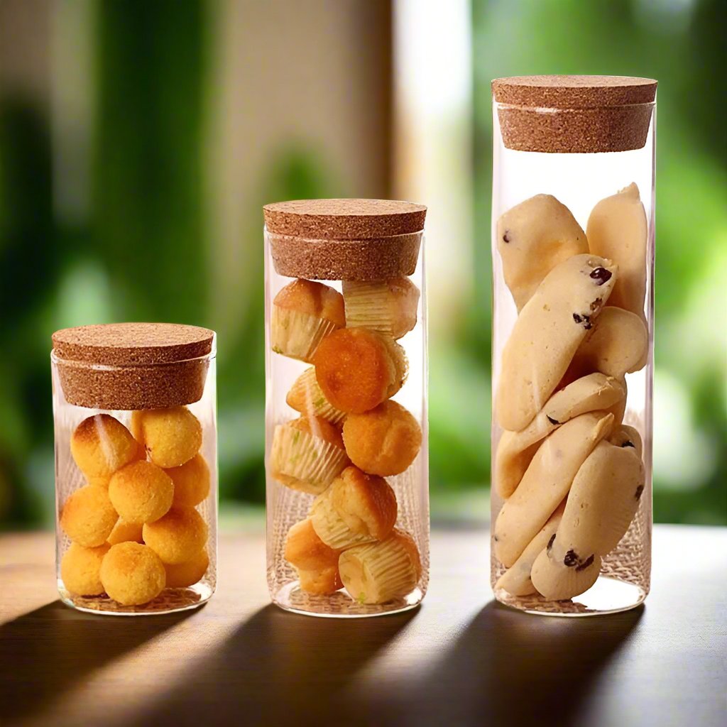 • Ensemble de 3 Boîtes de Rangement de Cuisine avec Couvercles en Liège Découvrez cet ensemble de 3 boîtes de rangement pour la cuisine, fabriquées en verre transparent, offrant une solution pratique et élégante pour organiser vos aliments. Chaque boîte a une capacité de 300 ml (10 oz), idéale pour conserver une variété d'aliments tels que le thé, le café, les épices et les collations. Ces boîtes garantissent que votre cuisine reste ordonnée et esthétique.