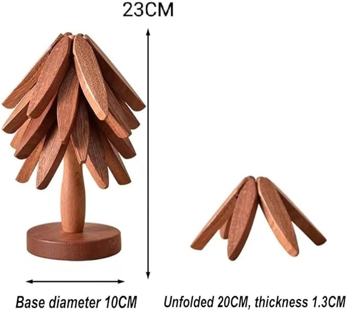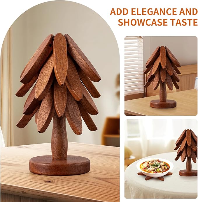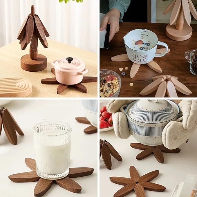 Ensemble de dessous de plat en bois sculpté, inspiré par la forme d’un arbre.