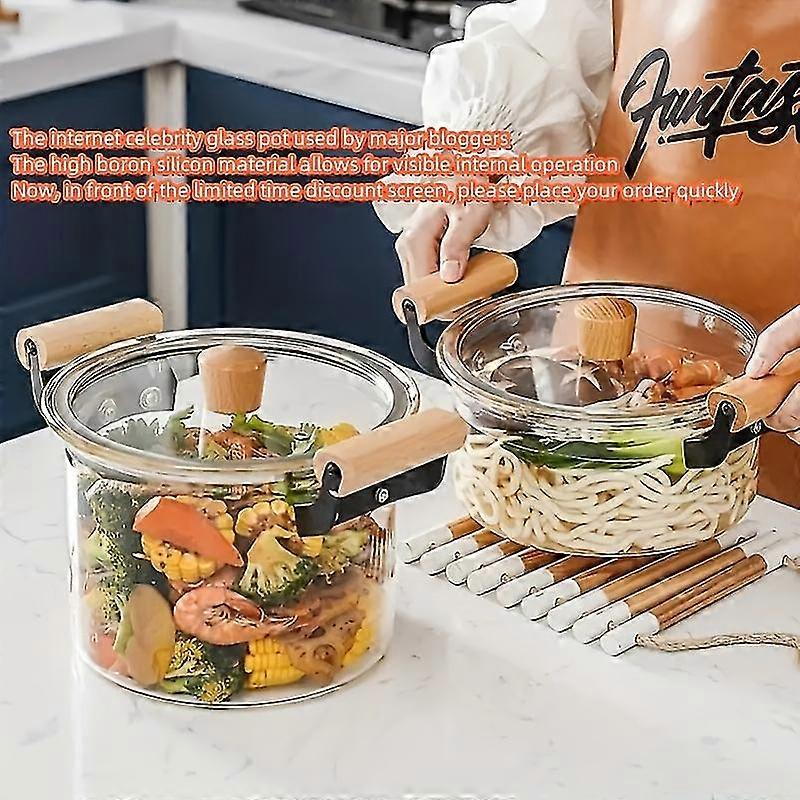 Marmite en Verre 4.5L avec Poignée en Bois – Cuisson Saine