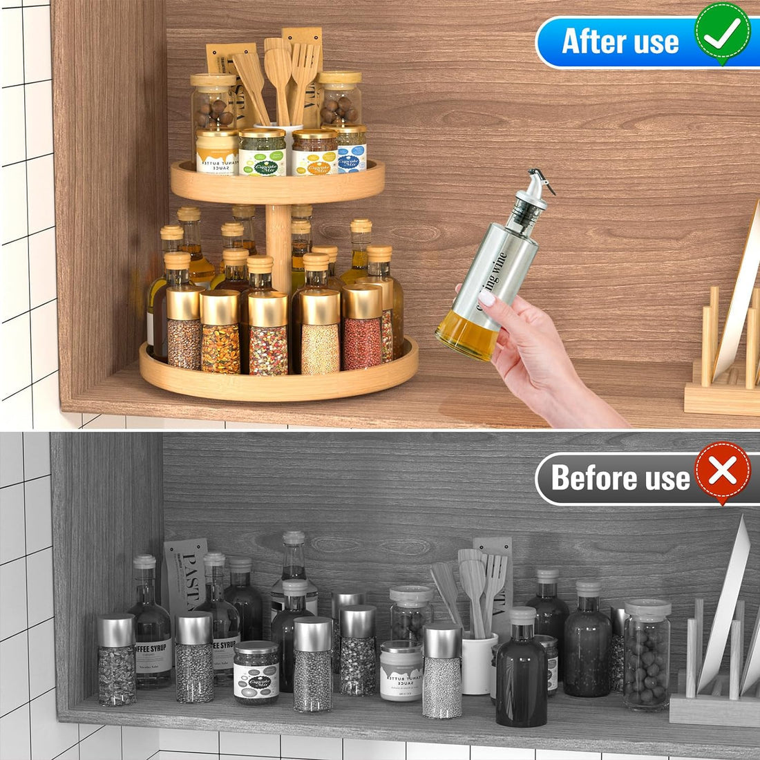 Transformez votre cuisine en un espace ordonné et harmonieux grâce à cette étagère rotative multifonctionnelle en bambou naturel. Conçue pour offrir un accès rapide et une visibilité totale, elle combine praticité, design et durabilité.
