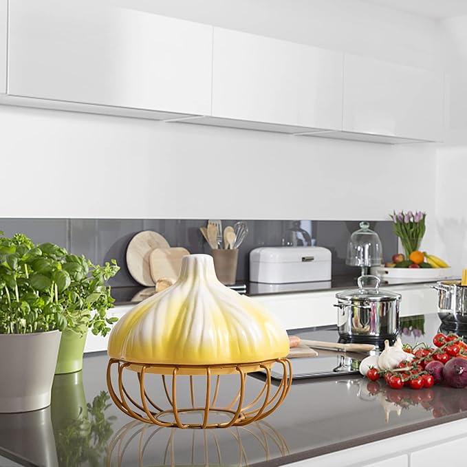 Conservez vos gousses d’ail dans les meilleures conditions grâce au panier à ail en fer avec couvercle en céramique. Son design perforé favorise une circulation optimale de l’air, évitant l’humidité et prolongeant la fraîcheur de vos aliments.