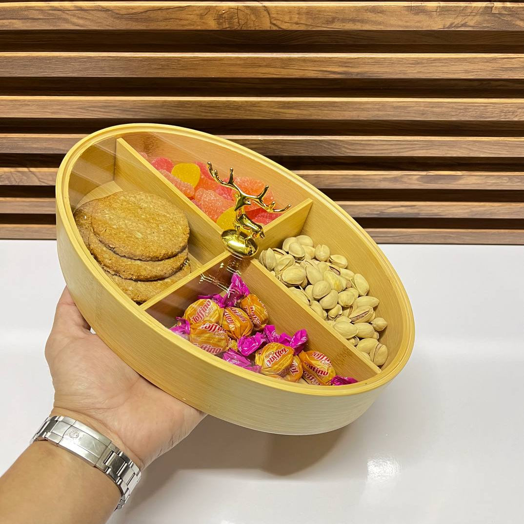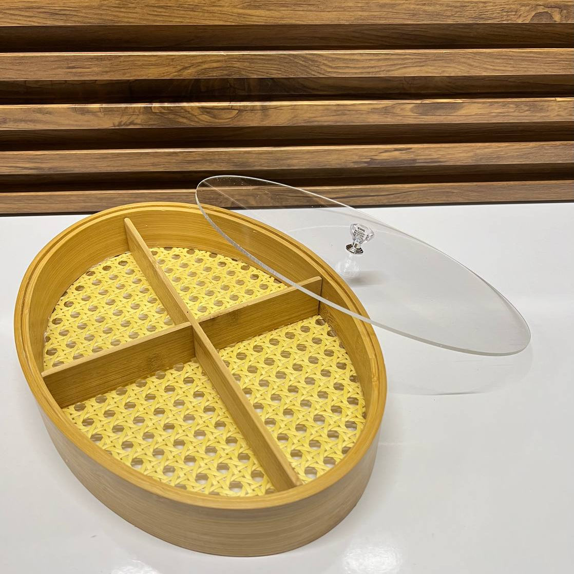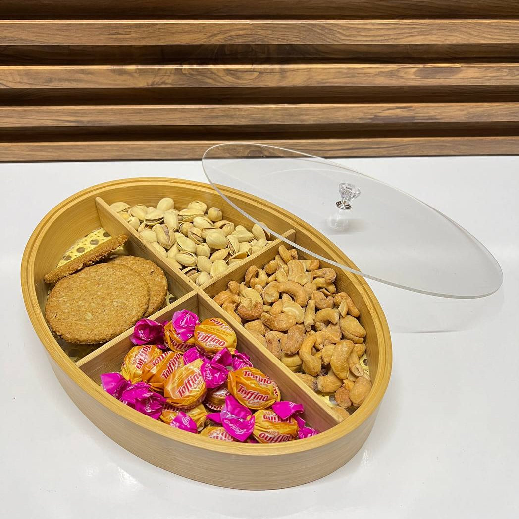 Plateau en Bambou à 4 Compartiments – Couvercle Inclus pour Organiser Noix et Desserts