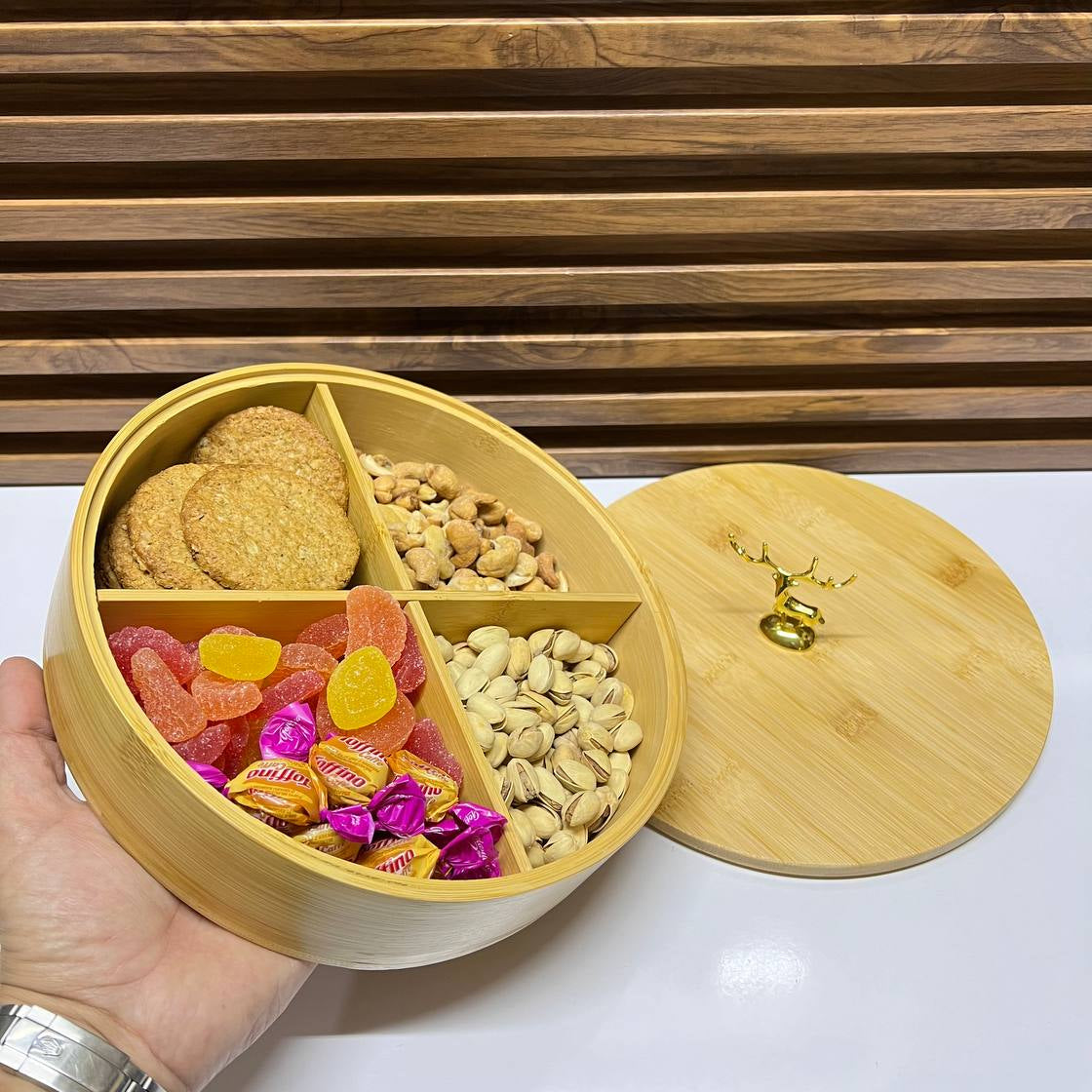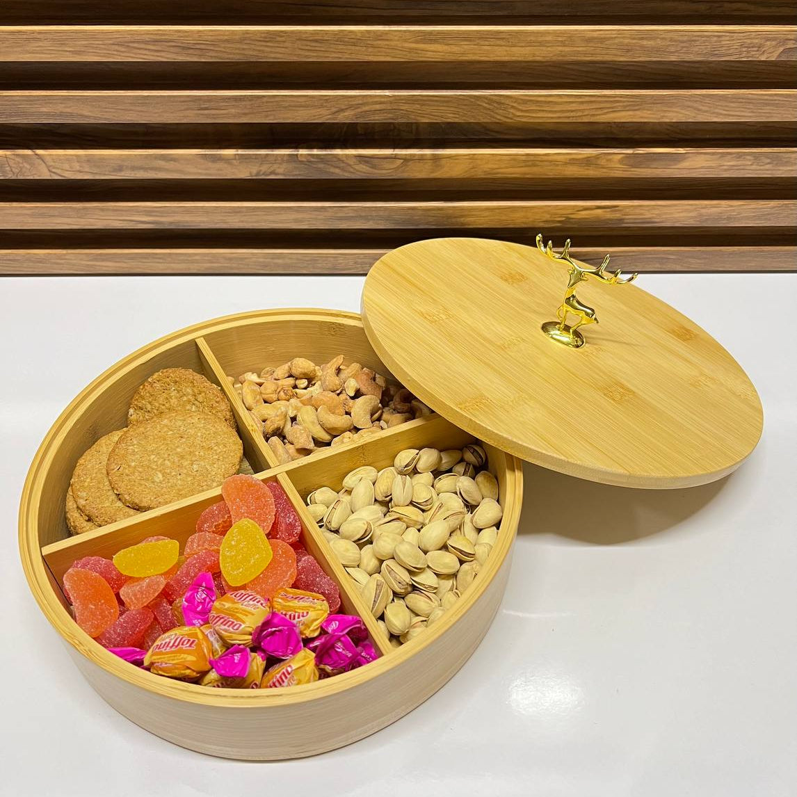 Plateau Rond à 4 Compartiments avec Couvercle – Idéal pour la Présentation et le Rangement