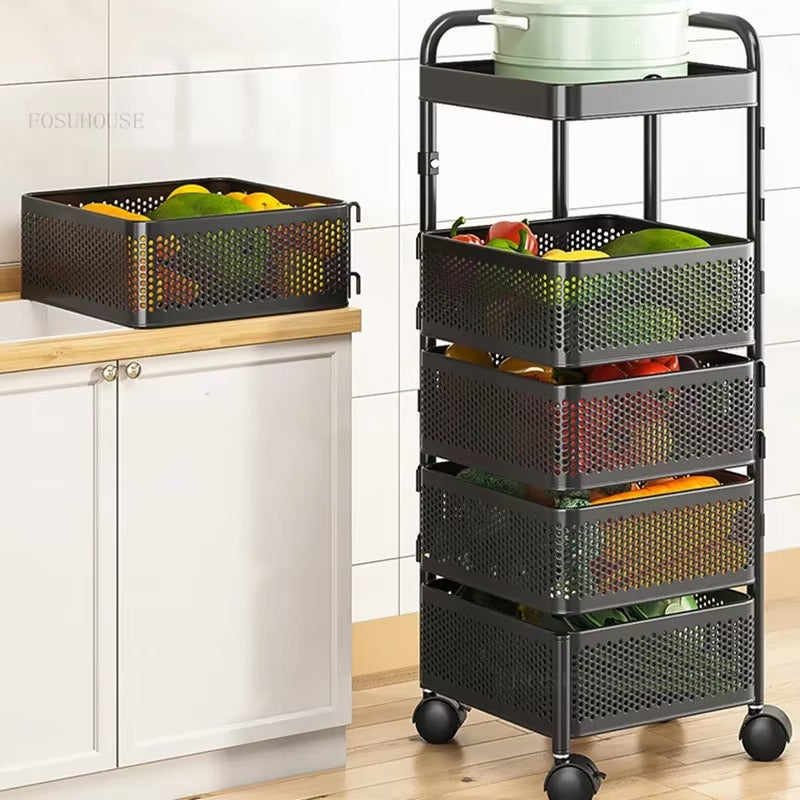 Optimisez votre espace avec cette étagère de cuisine rotative multi-niveaux et multifonction, idéale pour organiser fruits, légumes, condiments, ustensiles ou petits appareils électroménagers.