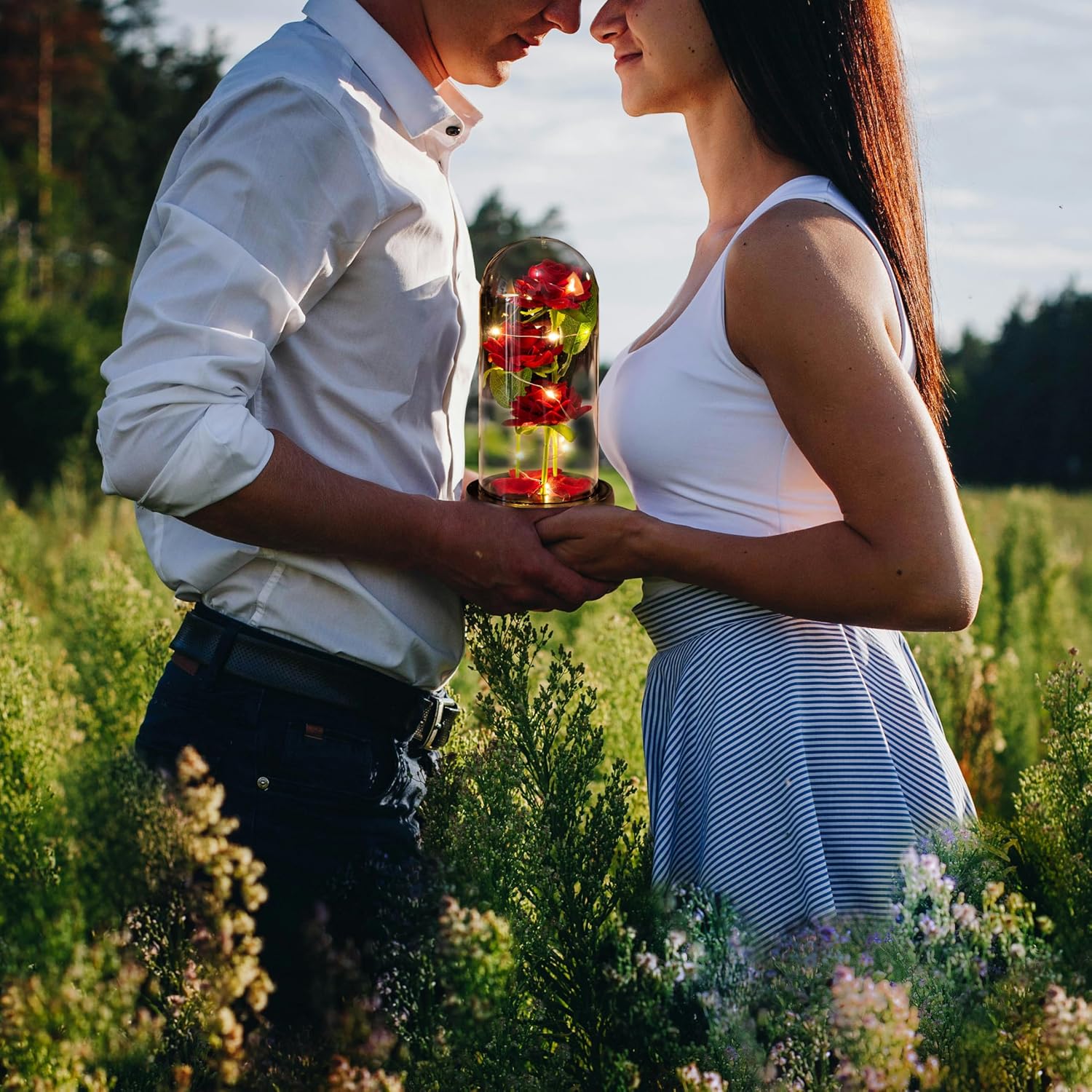 NESTO🎀 Rose Éternelle Rouge / Fleur Enchantée Lumineuse pour Épouse, Mère, Petite Amie.✨