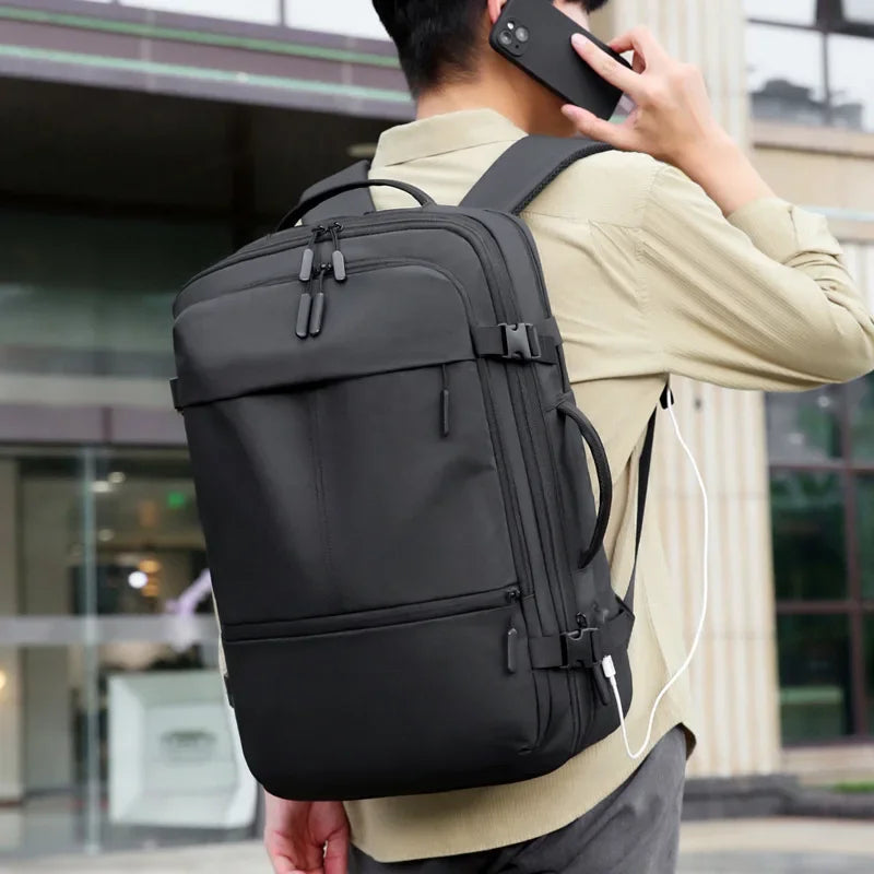 Ce sac à dos multifonctionnel allie style, sécurité et commodité pour les hommes en déplacement. Conçu pour les voyages, l’école ou le bureau, il offre une grande capacité pour ranger un ordinateur portable, des vêtements et des essentiels de travail. Grâce à sa conception extensible, ce sac offre plus d'espace lorsque nécessaire, et le port de charge intégré vous permet de rester connecté où que vous soyez. Un système antivol innovant assure la sécurité de vos objets précieux, ce qui en fait un compagnon de voyage parfait pour les affaires ou les loisirs.