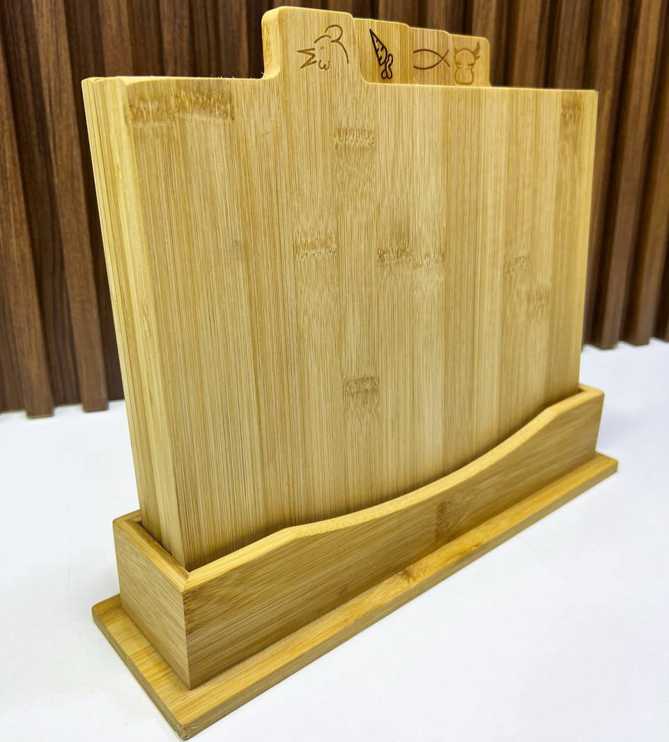 🔪🌿 Set de 4 Planches à Découper en Bambou avec Support