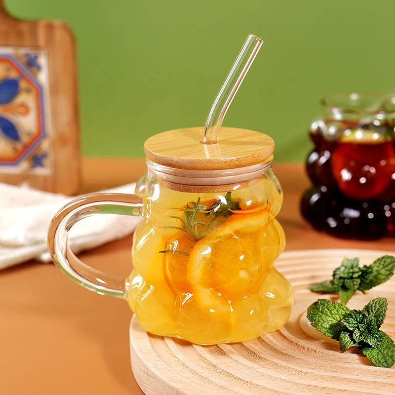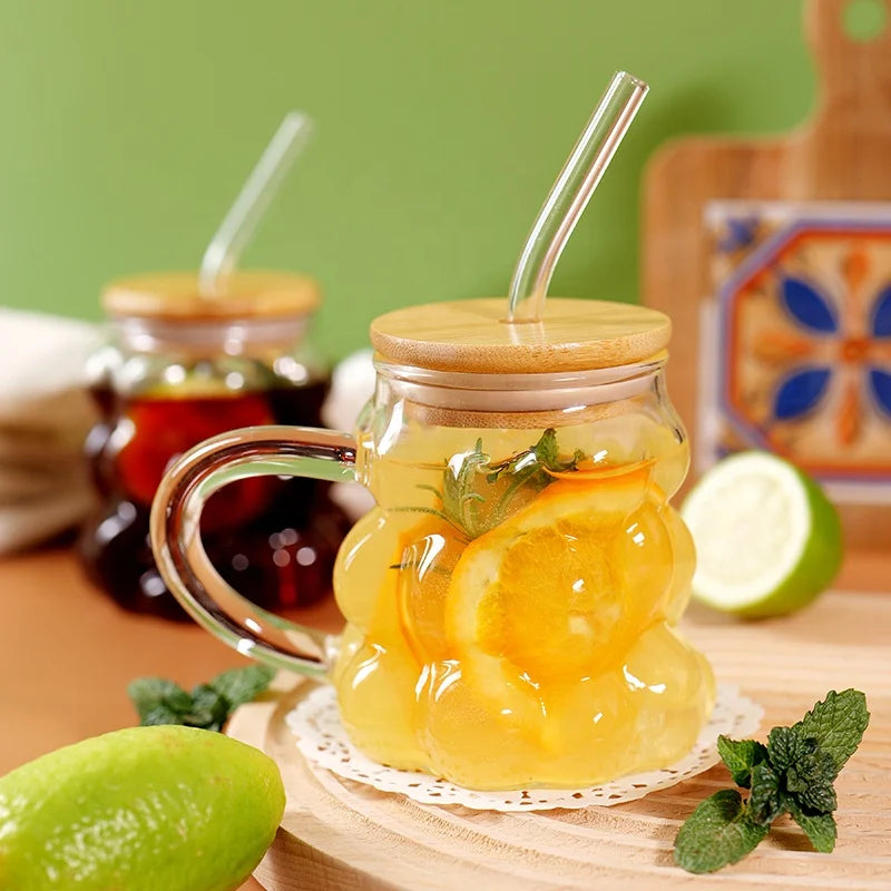 Tasse à café en borosilicate avec couvercle en bambou et paille, personnalisable