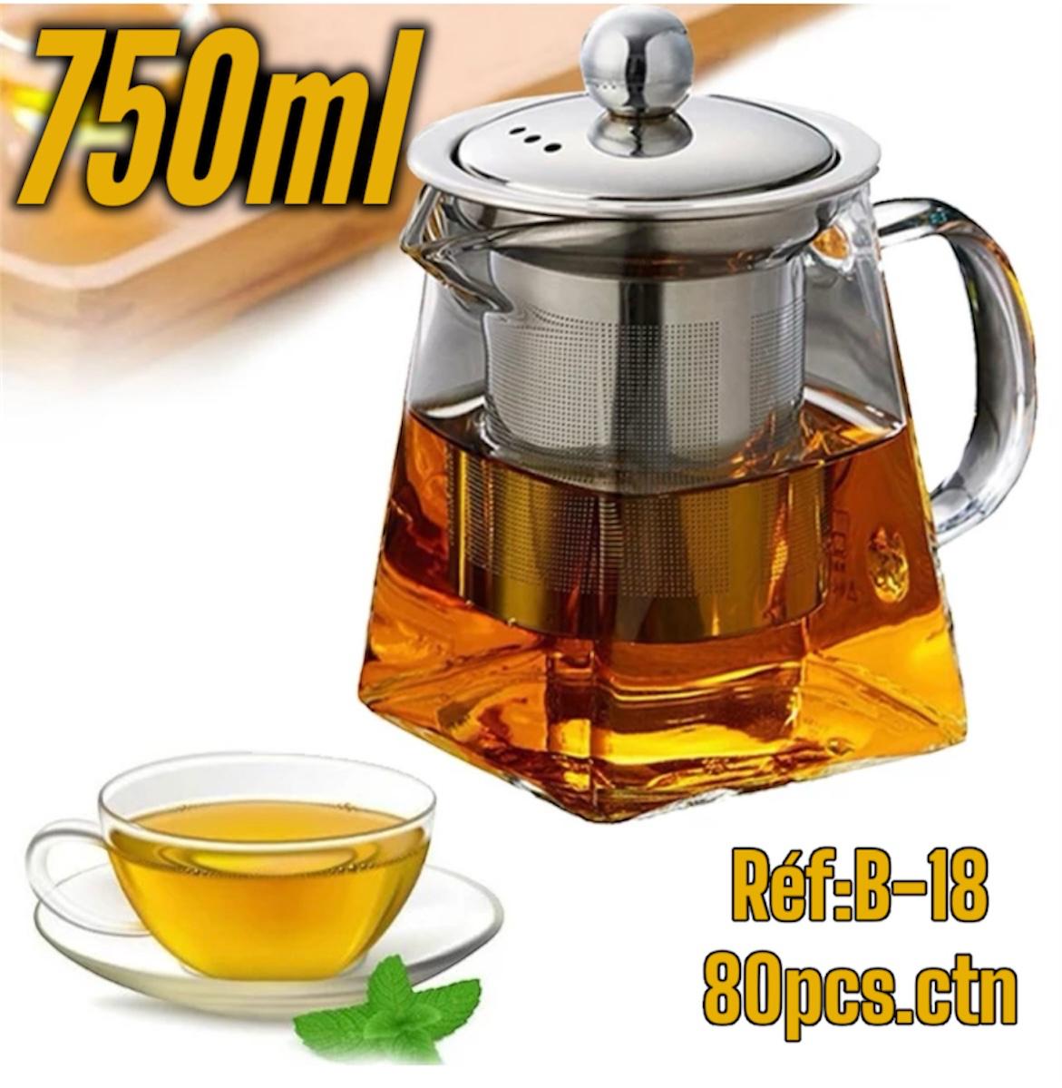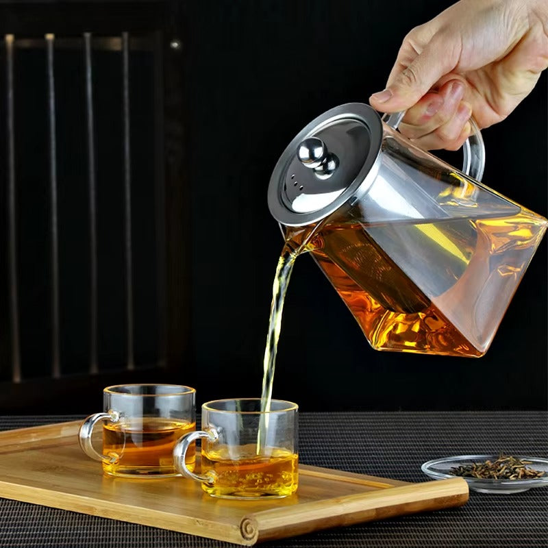 Théière Carrée en Verre Borosilicate avec Infuser en Acier Inoxydable – Design Élégant & Résistant à la Chaleur .